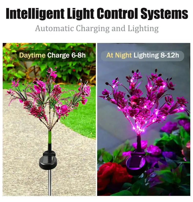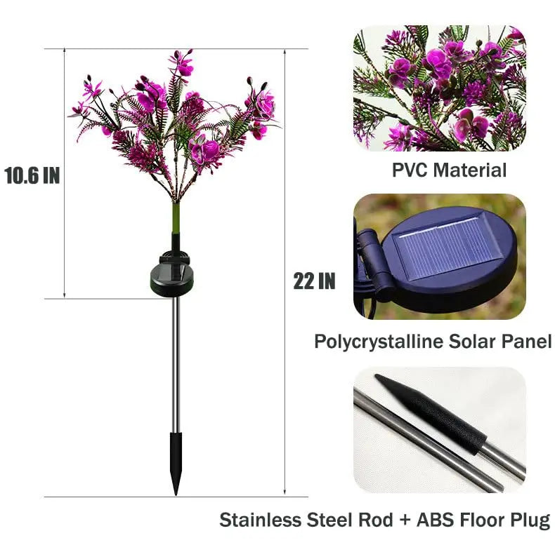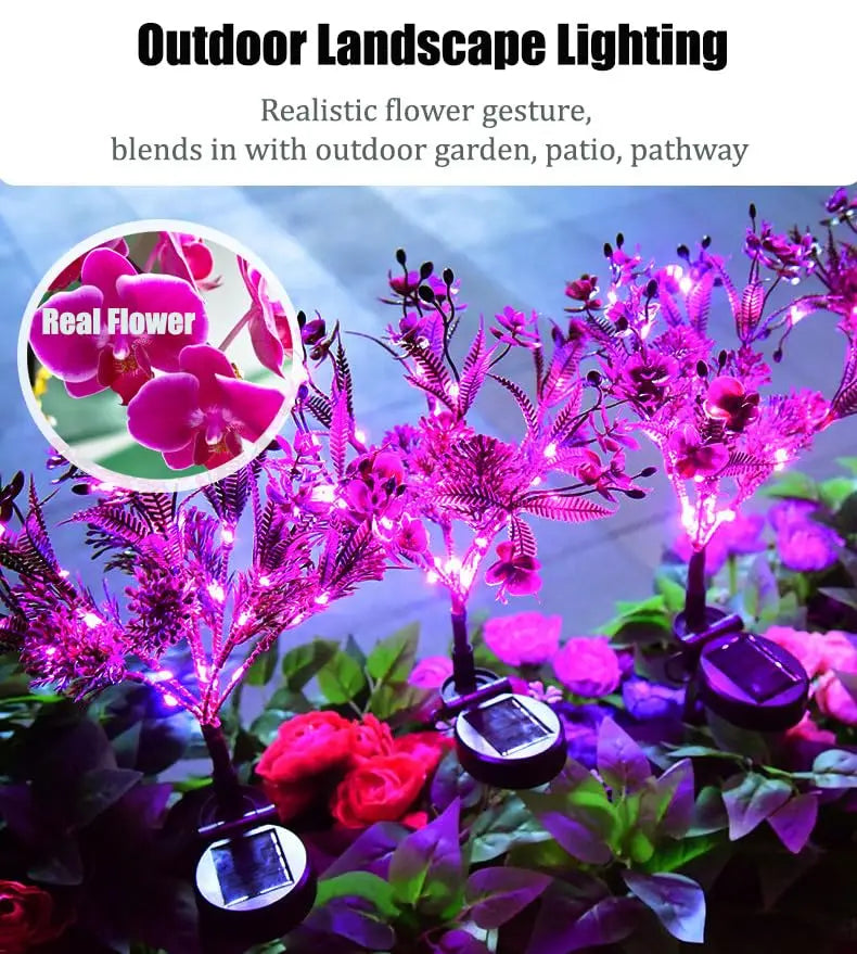 Garden Solar Lights Outdoor 14 LED Phalaenopsis Solar Flowers Lights Waterproof IP65 Solar Stake Lights Pathway Garden Decor